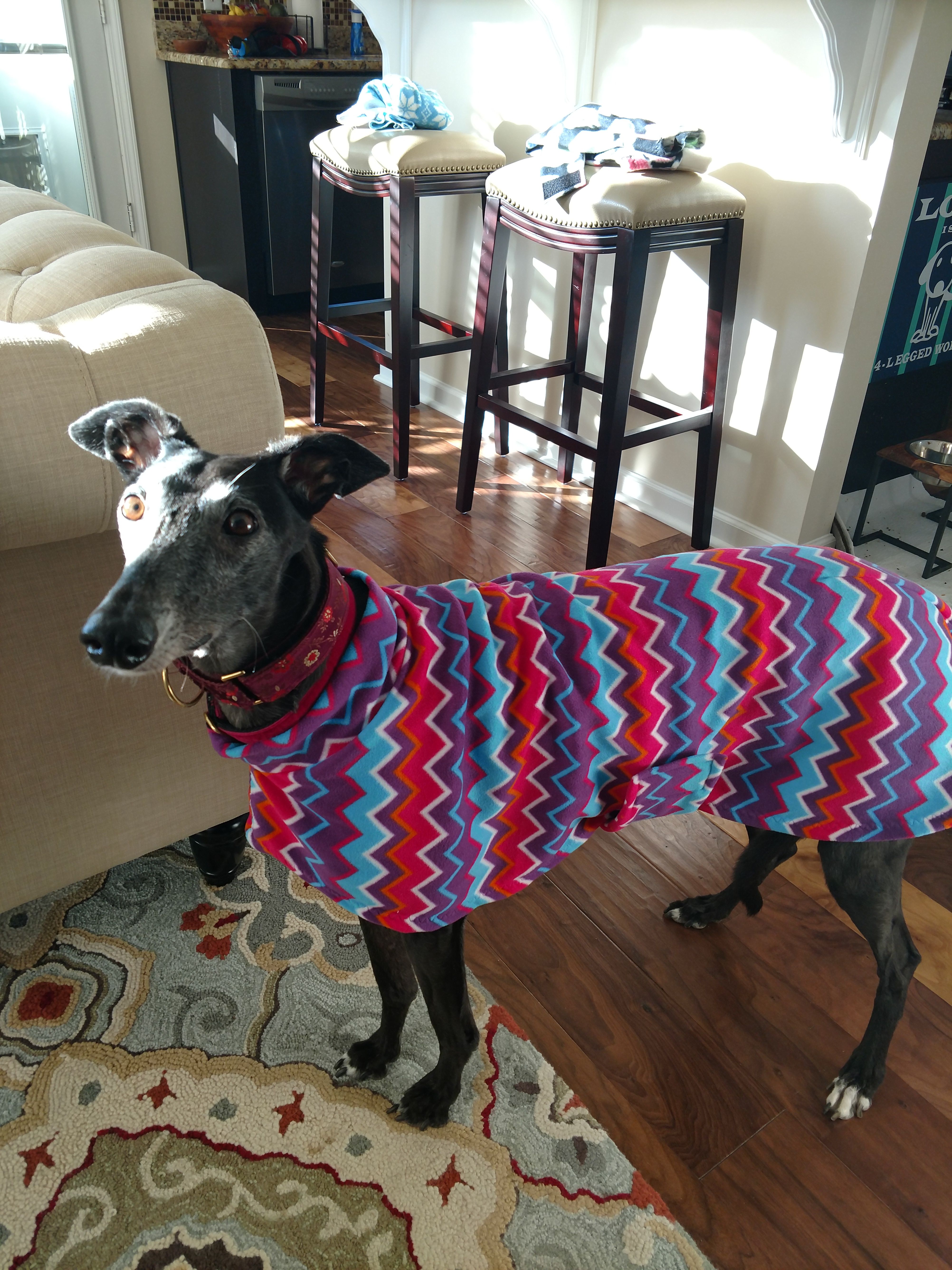 Blackberry nice and warm in her Zig Zag micro fleece housecoat.