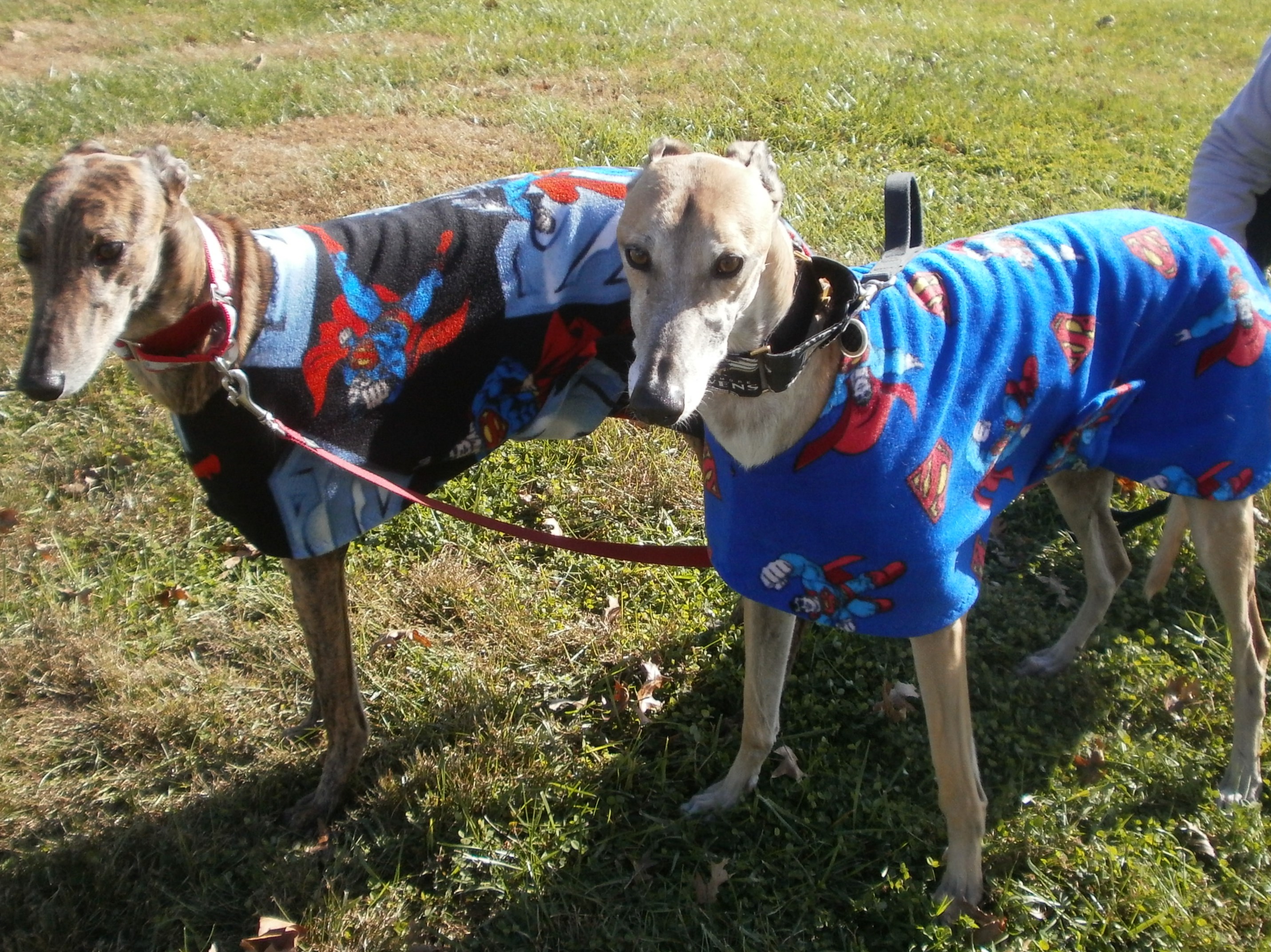 Luke and Linius wearing custom Superman coats.