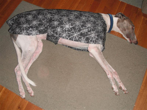 Major in his spider web Halloween jacket.