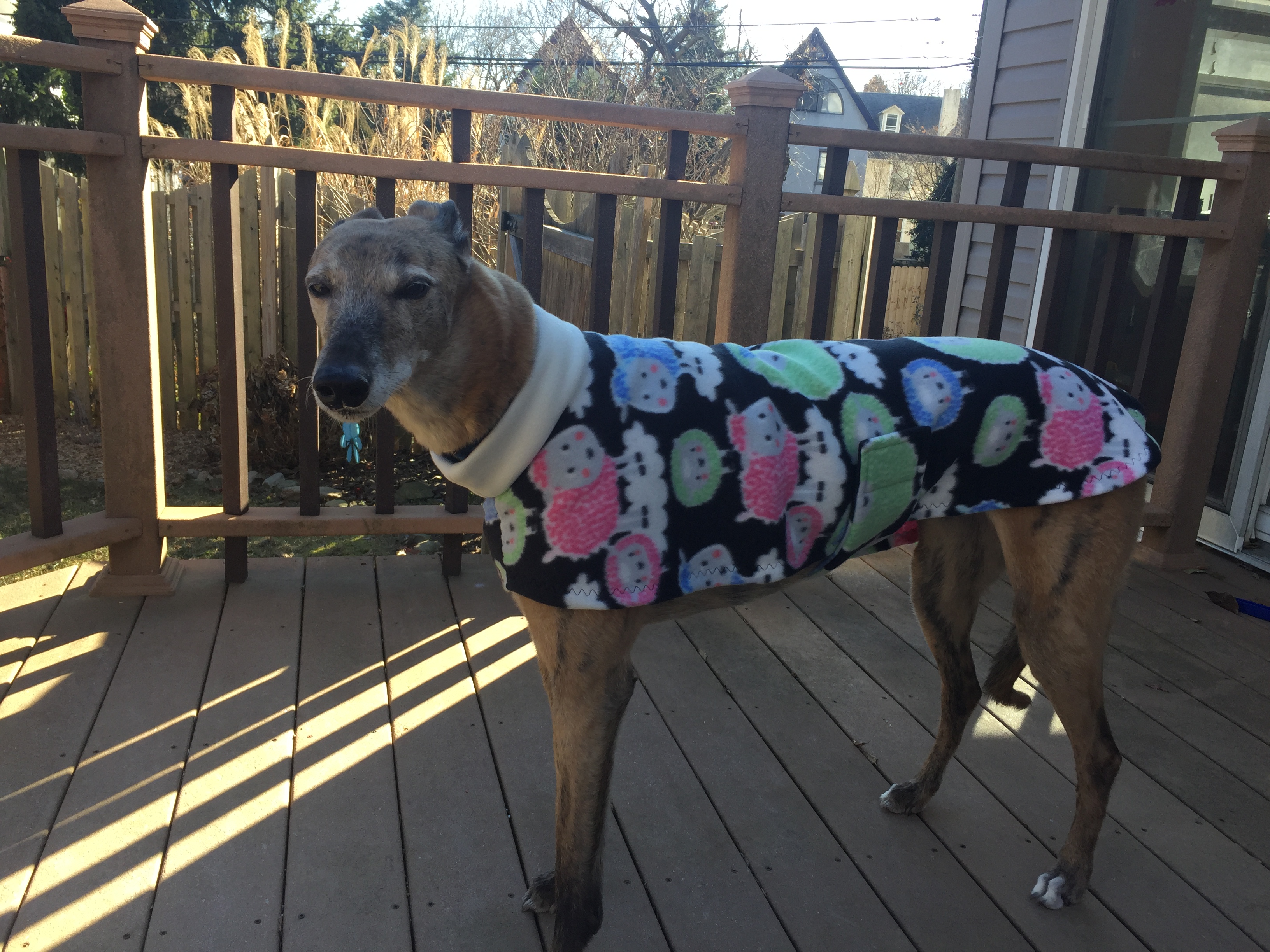 Sunshine is wearing her Sheep on Clouds fleece jacket. I have been told she is wearing it indoors to keep warm during the very cold spell we are having in the North East.
